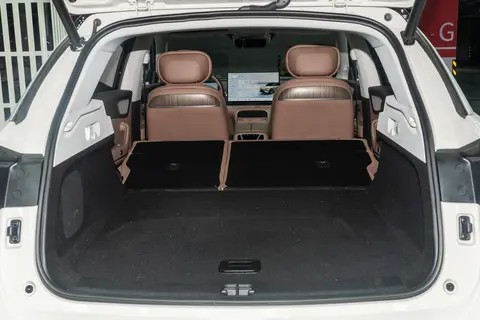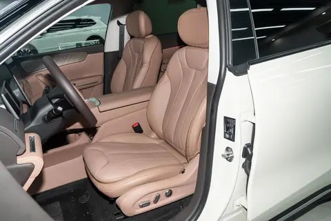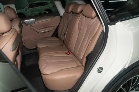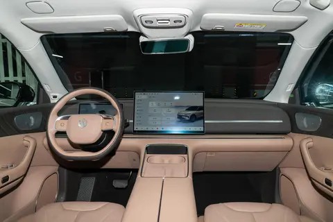 进入座舱,“舒适与科技共生”的理念随处可见。2930mm轴距转化为980mm的后排腿部空间,180cm乘客落座后膝部仍有两拳半余量,翘起二郎腿也毫无压力。全系标配的北美Nappa环保级真皮座椅,触感细腻且抗污易打理,前排加热、通风、8点式SPA按摩功能一应俱全,后排亦配备加热通风,配合可调节靠背角度,让每段旅程都成为享受。储物空间的灵活度更懂家庭需求:410L常规后备箱可轻松容纳婴儿车与行李箱,放倒后排座椅后扩展至974L,露营装备、烧烤架甚至折叠床都能轻松收纳。中控下方16.3L镂空储物槽配备柔光照明,夜间取物清晰便捷,50W风冷无线快充区则解决了手机充电发热的痛点。