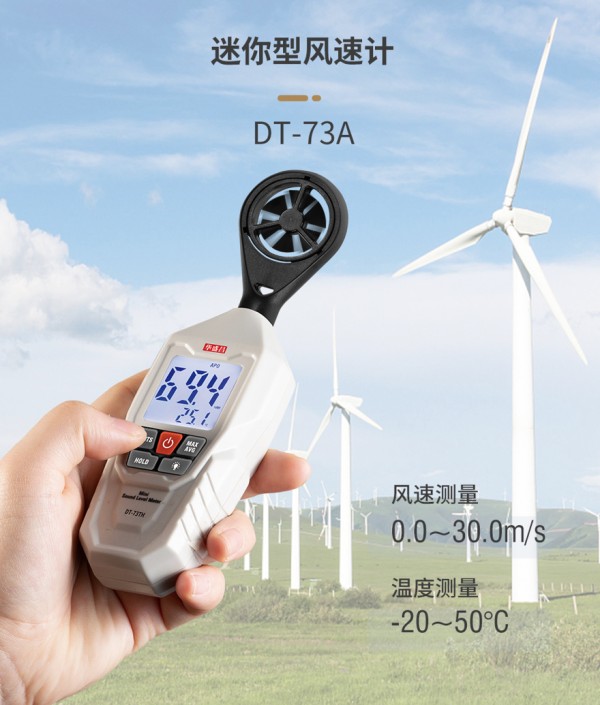 DT-73A以0.1m/s的高分辨率精准捕捉0-30m/s风速变化,同步测量-20℃至50℃温度范围,测温精度±2℃,分辨率0.1℃。适用于工业、建筑等领域,检测通风系统或户外环境的风速与温度。