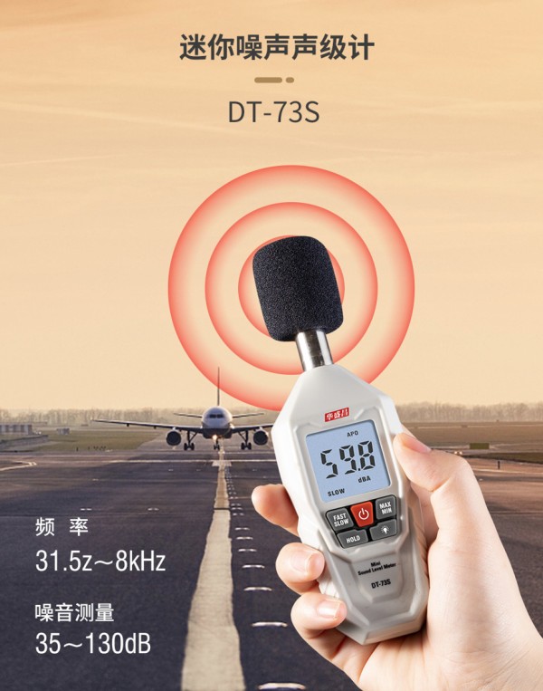 在噪音污染日益受关注的当下,DT-73S声级计以35-130dB宽域量程与0.1dB分辨率,频率范围31.5Hz~8kHz,快速锁定工厂、公共场所的噪音源头。且仪表支持瞬时值与最大值记录,适用于工厂、工地、公共场所的噪音污染评估。