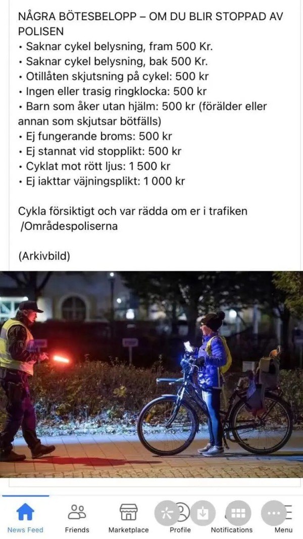 那天回家我马上订购了车灯,两百克朗左右。之后黑暗来临的日子,车灯确实发挥了无限作用。缴上的500克朗就当买个教训破财挡灾,毕竟破了一次就不会有第二次了吧?
