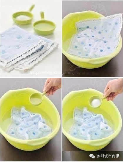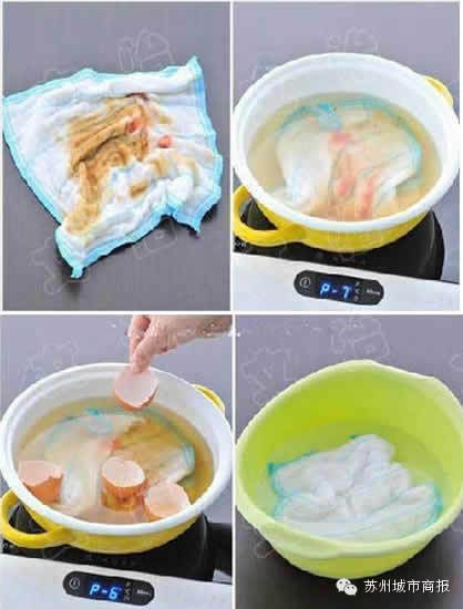 方法:将抹布放入清水中,放入生鸡蛋壳2只,大火煮6分种。取出冲洗干净,悬挂在通风干燥处晾晒干。