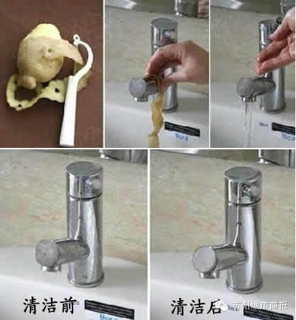 方法:土豆削下的皮,用贴着肉的那一面擦,马上恢复闪亮!