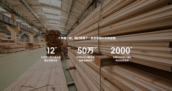 与全球12家大型木场建立深度合作,遍及美国、 德国、俄罗斯、芬兰和新西兰。拥有实木加工及仓储工厂,4万平方米原木加工车间,35万平方米生产制造车间,6万平方米仓储面积,致力打造50万㎡数字 化智能仓储空间。 全国2000+城区物流免费送达,总部直发, 提供完善物流、安装、售后服务。