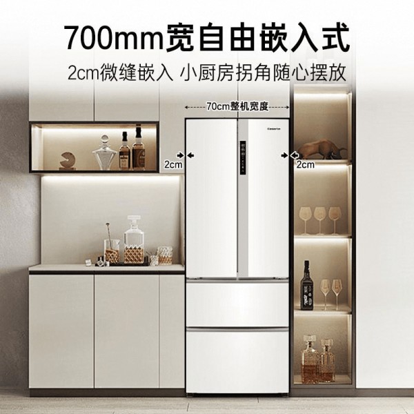 接下来,我们要推荐的是卡萨帝(Casarte)揽光冰箱星空版470升【星悦】。这款冰箱以其独特的法式风情与超薄嵌入式设计,为厨房空间带来了全新的视觉盛宴。