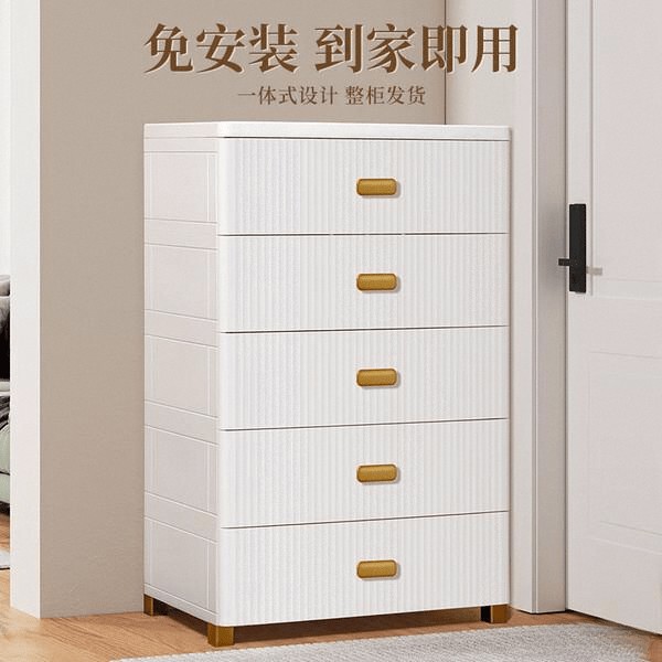 不仅如此,柜子的材质选用PP塑料,具备强大的承重能力,能够稳定支撑日常用品,无论是轻便还是略重的物品,都能放心放置。还特别配备了顺滑轨道和玫瑰金拉手,开关抽屉时的顺畅体验感让人倍感贴心,同时高贵的拉手设计也为家居环境增添了一份优雅气息。整体北欧风格设计简约而不失精致,完美融入各种家居风格,既实用又提升了空间的美感,是提升家居品质的理想之选。