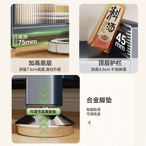 这款厨房多功能置物架是专为现代厨房设计的,它小巧但容量大,灵活的多层储物结构能够轻松应对各种厨房物品的收纳。从电饭锅到微波炉,再到日常的调料瓶和餐具,用户可以根据实际需要自由调整层高,以适应不同高度的物品。通过它,厨房不再杂乱无序,而是能够被整理得井井有条,享受烹饪的乐趣。