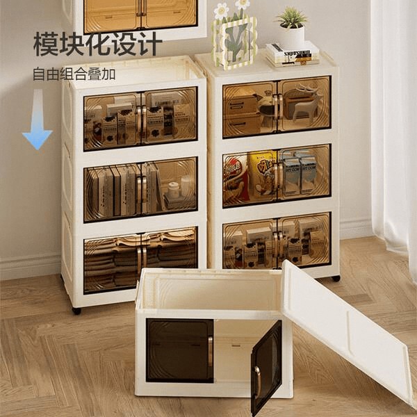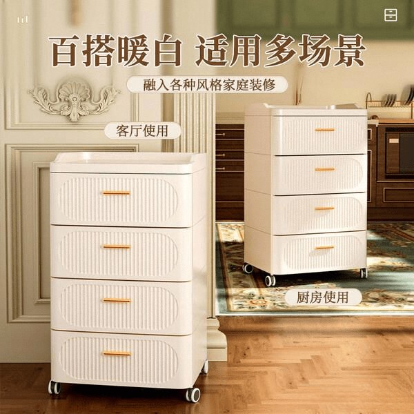 这款收纳柜最大的特点就是免安装设计,让你在使用时更加省心。它拥有49cm的宽度、4层的设计,可以放置衣物、玩具、书籍等各类物品,特别适合家庭、书房或儿童房使用。柜子结合了实用性和美观性,既能做到收纳的功能,又为空间增添了一丝轻奢感。这款收纳柜还配备了滑轮和扣手,移动自如,轻松应对空间布局的变化。