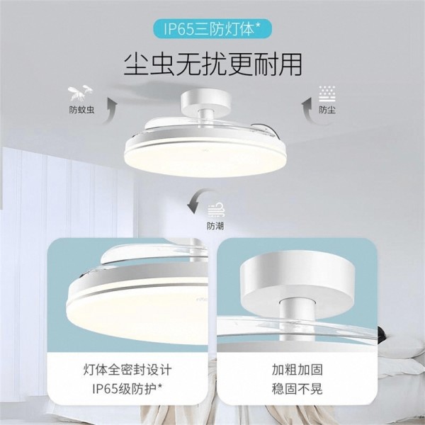 这款吊扇灯采用了IP65级别的三防设计,具备防潮、防尘和防触电的特性,确保了使用的安全性与耐用性。48寸的超大尺寸设计,不仅提供了宽广的送风范围,还兼顾了美观与实用性,成为家居装饰中的亮点。
