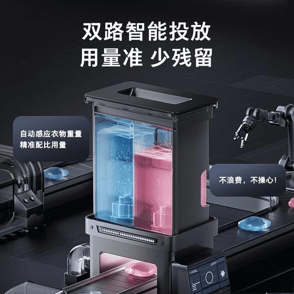 它还有AI智能投放功能,能自动感知衣物重量,精准控制洗衣液的用量,省心又省力,再也不怕洗衣液放多了。