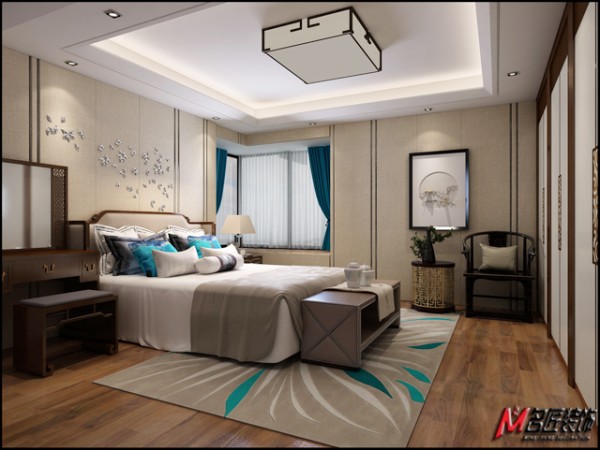 美式家居的卧室布置较为温馨,作为主人的私密空间,主要以功能性和实用舒适为考虑的重点,一般的卧室不设顶灯,多用温馨柔软的成套布艺来装点,同时在软装和用色上非常统一。