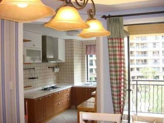 开放式厨房设计,厨房的瓷砖也很独特,类似布的感觉。