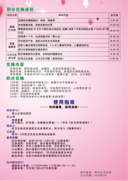 秀山乡卫生院创新推出健康管理积分制激励居民健康生活
