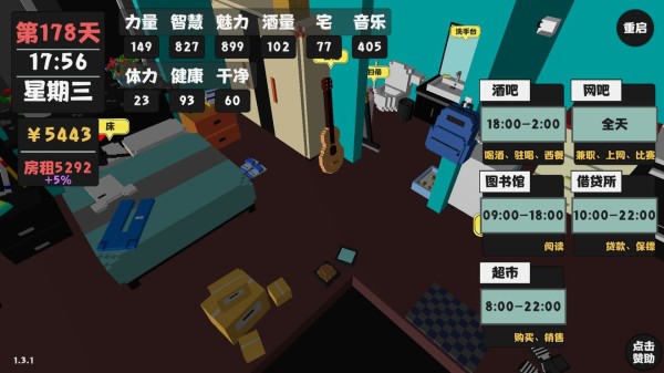第四个月:大家梦寐以求的泡妹来了,前半个月都要9点起床去图书馆读书,聊天,读书,回家,吃饭【不能点外卖】,驻唱,洗澡,睡觉。后半个月又来和房东搞好关系【好感100】,多读书【编程书】。