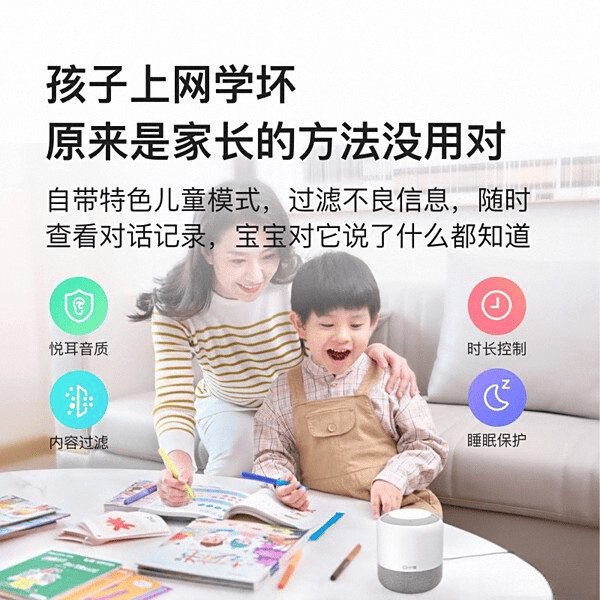 这款音箱不仅支持语音点播音乐和故事,还可以成为你的智能家居控制中心。你可以通过简单的语音命令来调节空调、开启电视或调整灯光,把家居设备无缝连接到一个平台。特别是在早晨起床时,它还能为你设置闹钟,唤醒你的美好一天。对于有小孩的家庭来说,这款音箱更是一个绝佳的早教伴侣。内置丰富的早教资源,如英语学习、童话故事和儿歌,让孩子在玩乐中学习,轻松愉快地开启智慧之旅。