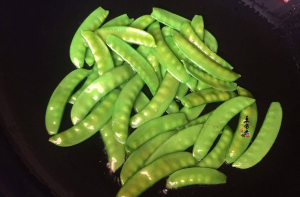 锅热油先爆炒几下荷兰豆倒出备用,炒的时候炒半熟即可