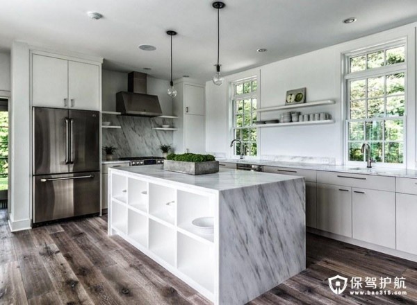 石材地板有各种各样的,包括最受欢迎的大理石,石灰华和石板。由于图案和颜色的不同,石材让你的厨房地板具有独特性和朴实性的外观。石材地板天然凉爽,如果在寒冷的气候下安装石材地板,可考虑在冬季添加地板辐射热以加热地板。
