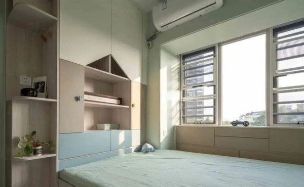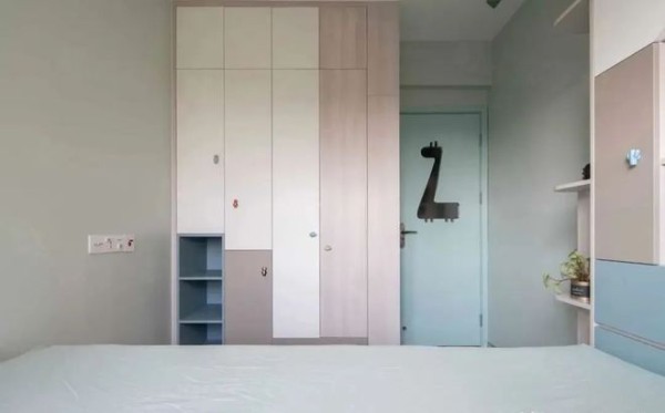 色彩与安全:空间用淡雅的马卡龙色装饰,温和又丰富,利于孩子启蒙时期的颜色认知;儿童房门做了小鹿造型镂空设计,既童趣十足,又方便屋主随时照看孩子,安全又贴心。