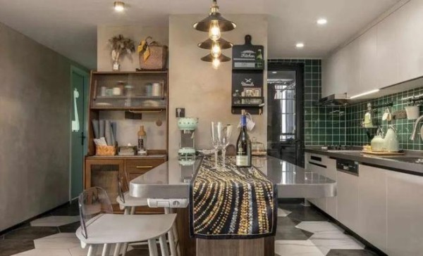 5. 厨房:开放设计 + 细节亮点,工业风也能惬意