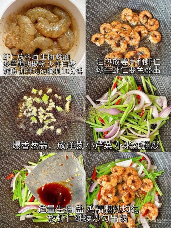 1️⃣虾仁放料酒生抽蚝油,多些黑胡椒粉少许白糖淀粉抓拌均匀腌制10分钟