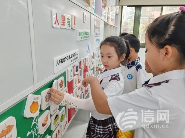 同学们在题板上进行垃圾分类演练。(来源:香港中路街道办)