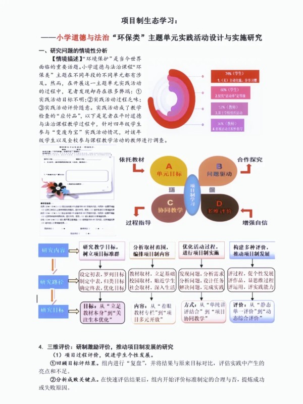 这是一种超新颖教学模式!孩子们基于现实生活去探究,围绕 “绿色生态” 理念解决驱动问题。课题以道德与法治 “环保类” 主题单元教学目标为指引,运用项目制学习。重组细化教材单元目标,用问题驱动学生自主合作探究,多维评价激发他们践行环保的热情,树立 “共建共享绿色生活” 意识 。在这个过程中,孩子学会关注生活、探究问题、合作分享,还能培养高阶思维~
