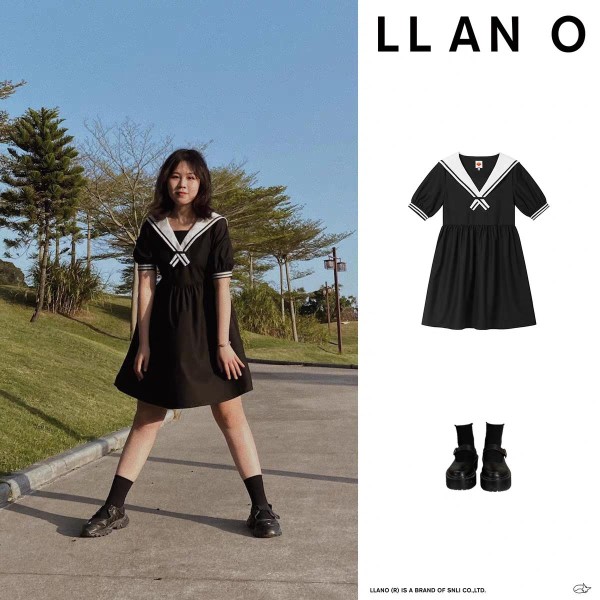 颜色采用了黑色和白色的搭配,无论是什么色的皮肤穿上都不会踩雷。这条海军风的日系连衣裙看起来非常活泼清新,也不会过于可爱,非常适合喜欢日系风的女孩子。下面搭配一双小皮鞋,再配上一双黑色袜子非常美。