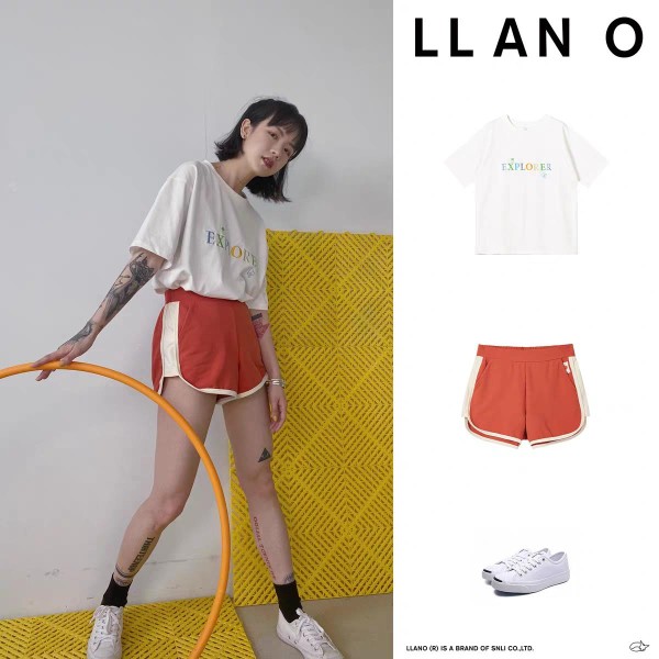 下身搭配了一条橙色的运动短裤,橙色看起来就是个很活泼的颜色,非常的具有青春气息。这身搭配简单的穿一双小白鞋就很合适,喜欢运动风的女孩子一定要尝试一下。