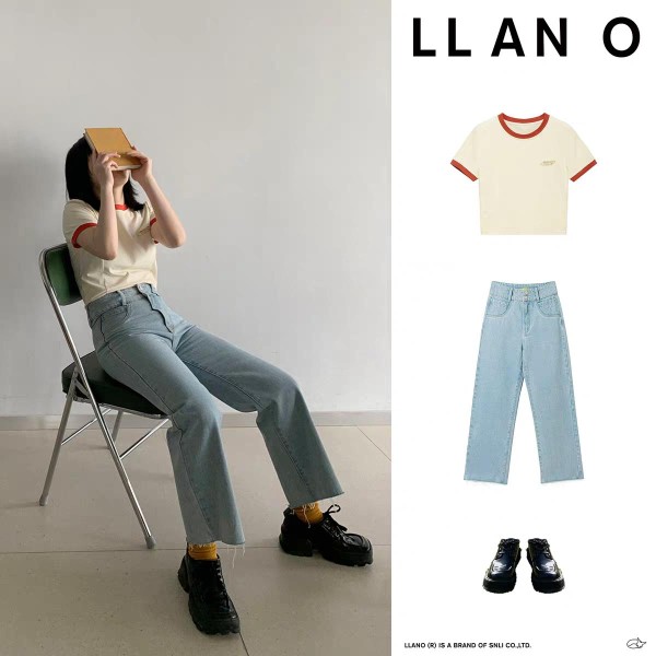 这身搭配属于基础款的穿搭,非常的日常经典,无论是日常出去逛街,还是出于郊游游玩,都非常的合适。上衣是一件修身的短T恤,能很好的优化身材的比例,视觉上看起来上身更短。