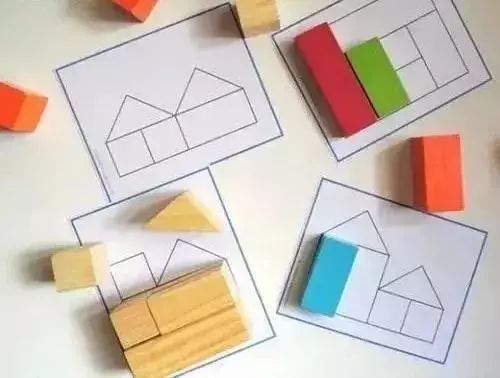 在墙上画好各种形状,然后让孩子分类粘贴。