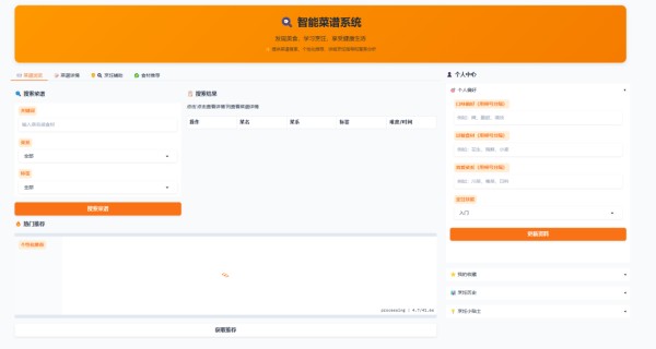 智能菜谱系统是一个基于人工智能的交互式烹饪助手应用,旨在帮助用户发现美食、学习烹饪技巧并享受健康生活。该系统集成了本地大语言模型(LLM)技术,提供个性化的菜谱推荐、详细烹饪指导、营养分析以及智能化的烹饪辅助功能。