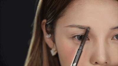 多数妹子不会使用眉笔,眉笔用来画眉尾再适合不过了。眉头和眉腰使用眉粉,均匀地扫在眉毛上。
