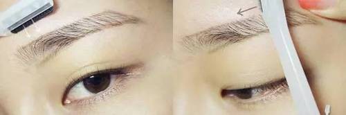 Step5:用修眉刀在眉头上方向下修整眉毛。(左图) ↓