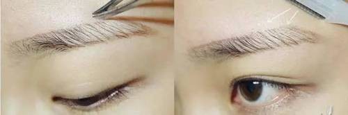 Step3:用镊子将眉毛上方的多余眉毛拔掉。(左图) ↓