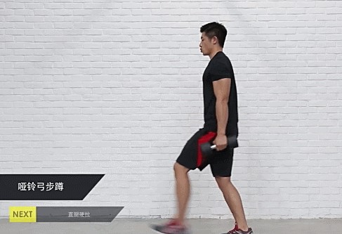 动作标准:前脚脚尖朝正前方,后脚脚尖朝斜前方,下蹲时保持膝盖与脚尖方向一致,感受大腿和臀部的肌肉紧张。