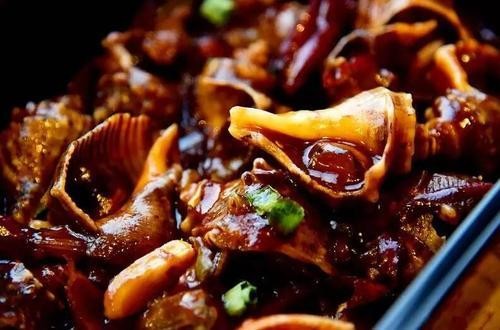 食材:海螺、盐、糖、料酒、胡椒粉、生抽、老抽、醋、淀粉、葱姜蒜、辣椒