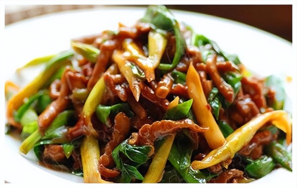 5、加鸡精、胡椒粉连肉一起炒匀起锅装盘即可。