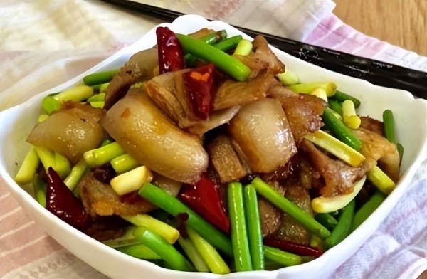 食材:熟猪肚、青蒜、葱、干辣椒、生抽、豆瓣酱、料酒、白糖、酱油