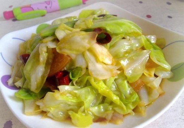 食材:包菜、五花肉、大蒜、干红椒、盐、油、酱油、蔬之鲜。