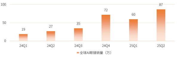 数据来源:Wellsenn XR 2025年第2季度VR/AR/AI眼镜产业销量跟踪报告,截至2025.7.31。上述数据仅为过往表现的统计,不代表未来表现及相关基金的任何收益保证,不作为任何投资建议。