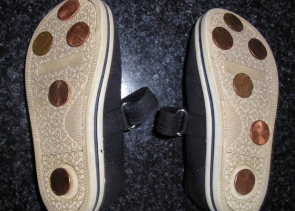 8.自制踢踏舞鞋孩子们想尝试几乎所有的东西。对于想要试拍的小舞者来说,这是一个天才的想法。踢踏舞鞋价格昂贵,因此可以通过在孩子运动鞋的底部粘几便士来制作临时鞋。您的孩子一定会娱乐几个小时。