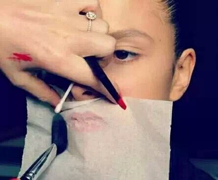8.想要口红持续一整天?在嘴唇上放一张卫生纸,然后隔着纸涂上一层光泽的散粉