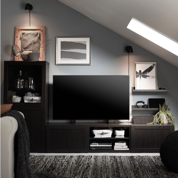 视听储物组合/玻璃门 拉维肯/欣维 黑褐色透明玻璃 240x42x129 厘米