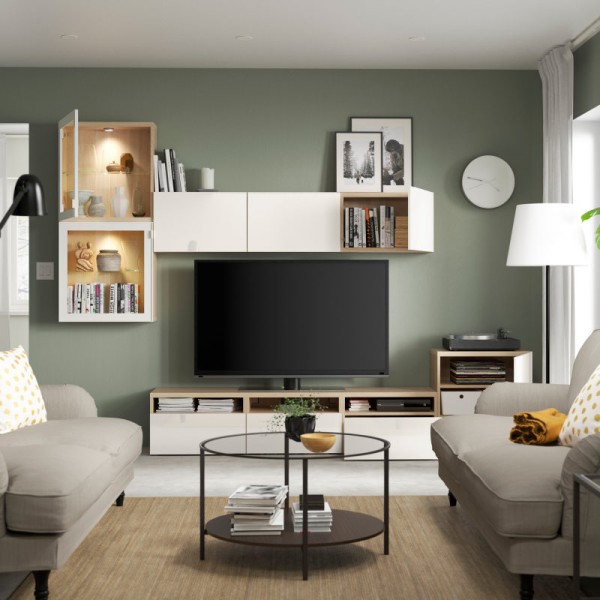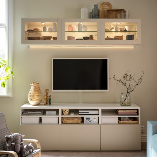 视听储物组合/玻璃门 白色 欣维/拉维肯 浅灰/米色 180x42x192 厘米