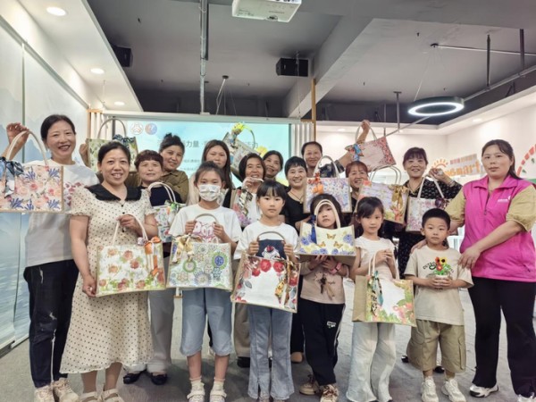 巧手传递温情,共筑社区温暖底色。活动尾声,志愿者与孩子们共同参与蝶古巴特帆布包DIY手工制作,将普通帆布包打造成承载美好愿景的“友好空间”主题作品。孩子们将手工艺品赠予社区高龄老人,用行动传递善意,为活动画上温馨句号。这场微改造不仅是空间升级,更是社区温情的生动实践。