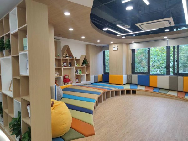如今的童萌童乐园,设有为宝宝、宝妈提供临时休息、喂食、充电场地的“暖新驿站”;开放给周边居民的亲子阅读区,在空余时间可以带孩子前来免费阅读,定期还会开展看电影、读书会等活动,小朋友可以在这里交朋友,大人可以在这里聊家常。