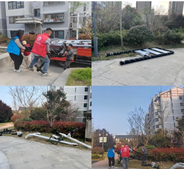 现宿迁市体育局审批发放了5套体育健身器材,并联系专业维修人员对小区广场上老旧破损的健身器材进行了更换补充。同时,小区网格员也向广大居民宣传引导爱护公共设施、安全健身。