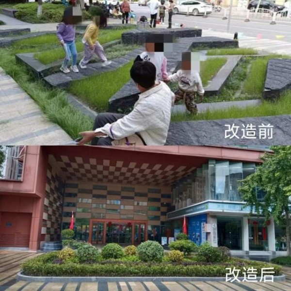 考虑到美观性和安全性,花坛设计将原先结构全部拆除,重新铺建,疏松土壤,并科学规划种植方案。改造后的花坛不仅美观大方,还减少了日常维护成本,为居民提供了一个更加安全、宜人的休闲环境。