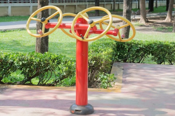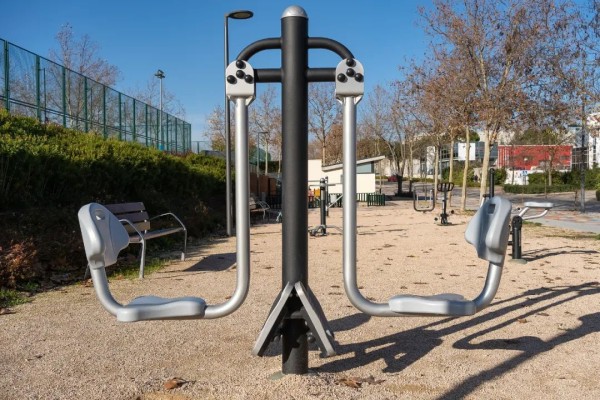 小区健身器械中,肩部活动器(或称太极揉推器)是常见的针对上肢和肩关节的运动器械。这类器械设计简单,操作方便,主要通过机械结构带动关节活动。