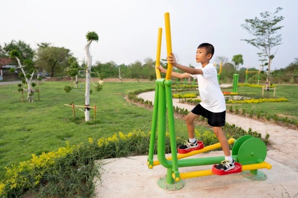 在龙潭街道光明社区内,色彩鲜艳的健身器材在优美的环境中显得格外醒目。正带着孩子在广场上散步的李女士停下脚步,指着一组新安装的健身器材对身边的朋友说道:“这里的器材又新又好使,社区里就有锻炼的好去处!”