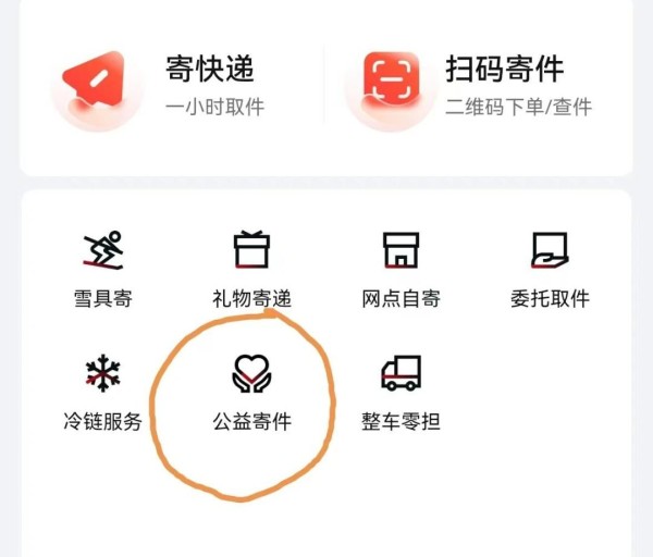 方法二,顺丰小程序——公益寄件,如下图: